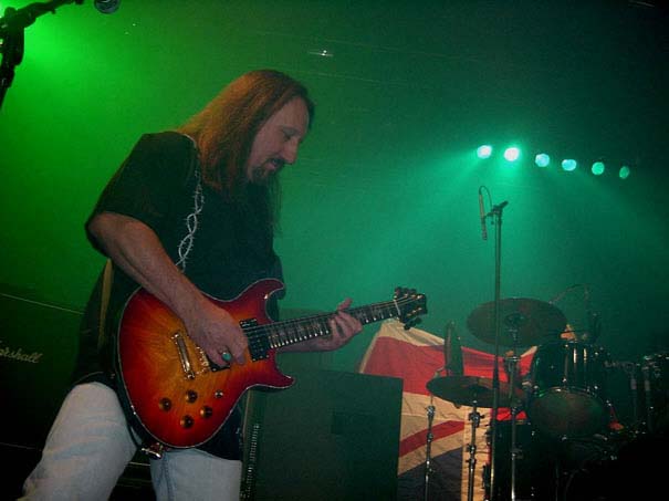Pictures by www.ruokangas.com In the stage pictures Mick Box is seen playing the guitar that was made especially for him by Juha Ruokangas who took these pictures