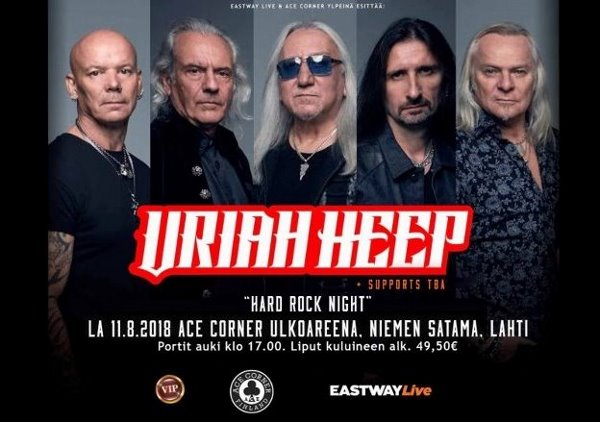 URIAH HEEP ALSO TO LAHTI IN AUGUST Uriah Heep will perform also in Lahti at Hard Rock Night event at Ace Corner in Niemi harbour 11th August. There will also be support bands which will be confirmed later. Concert tickets cost 49,50 EUR and are on sale at Menolippu.